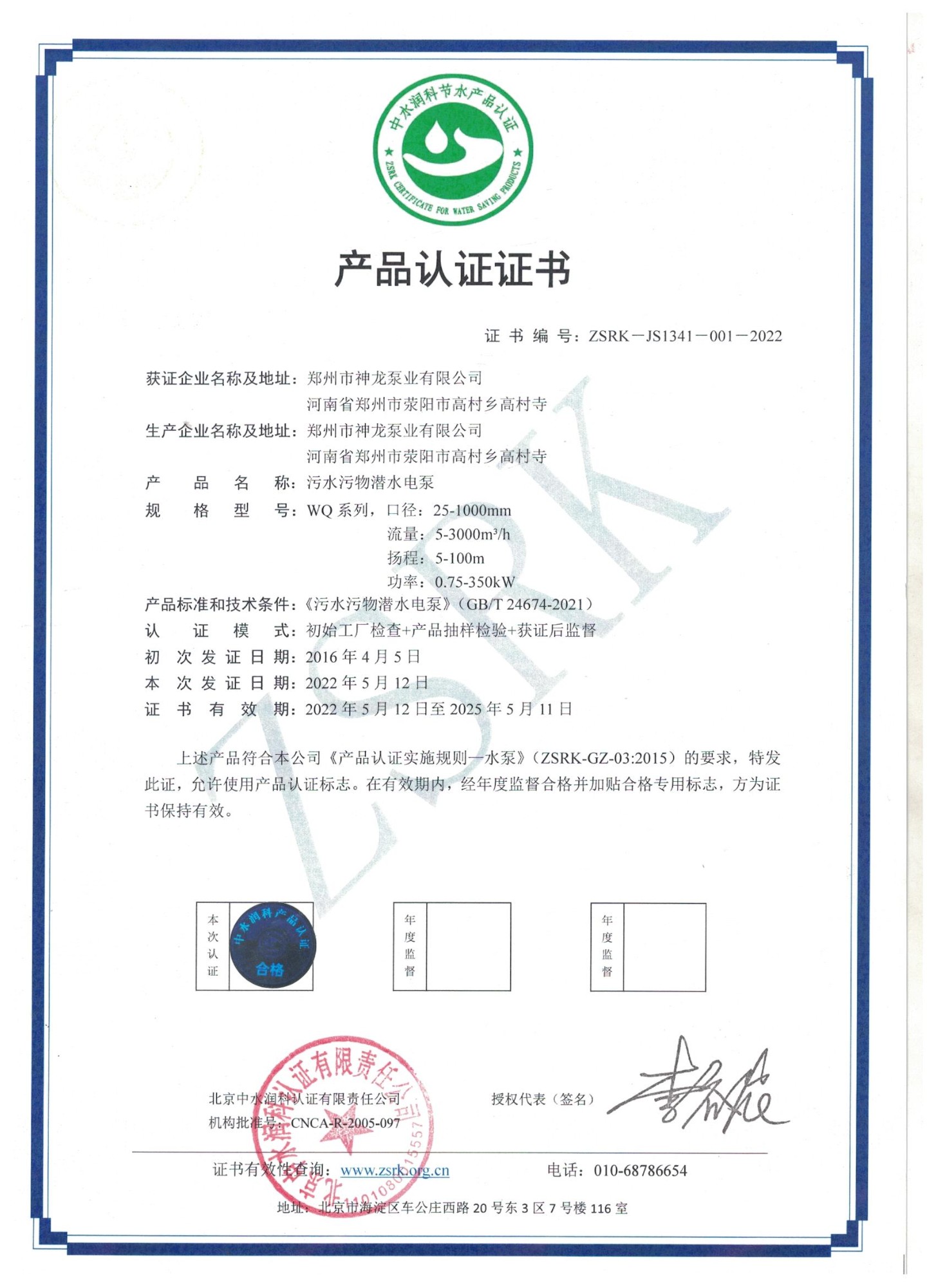 潛水排污泵節(jié)水認證